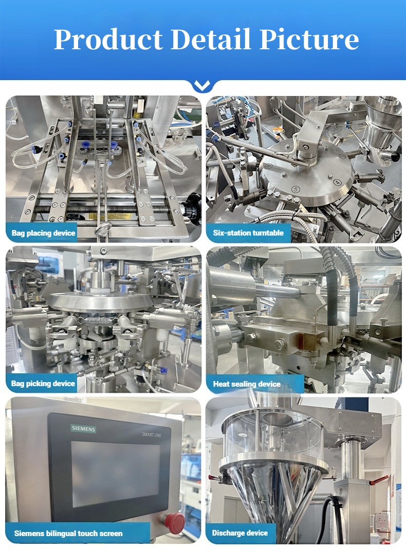 5. This machine uses pre made packaging bags with perfect packaging patterns and good sealing quality, thereby improving the quality and grade of the product.