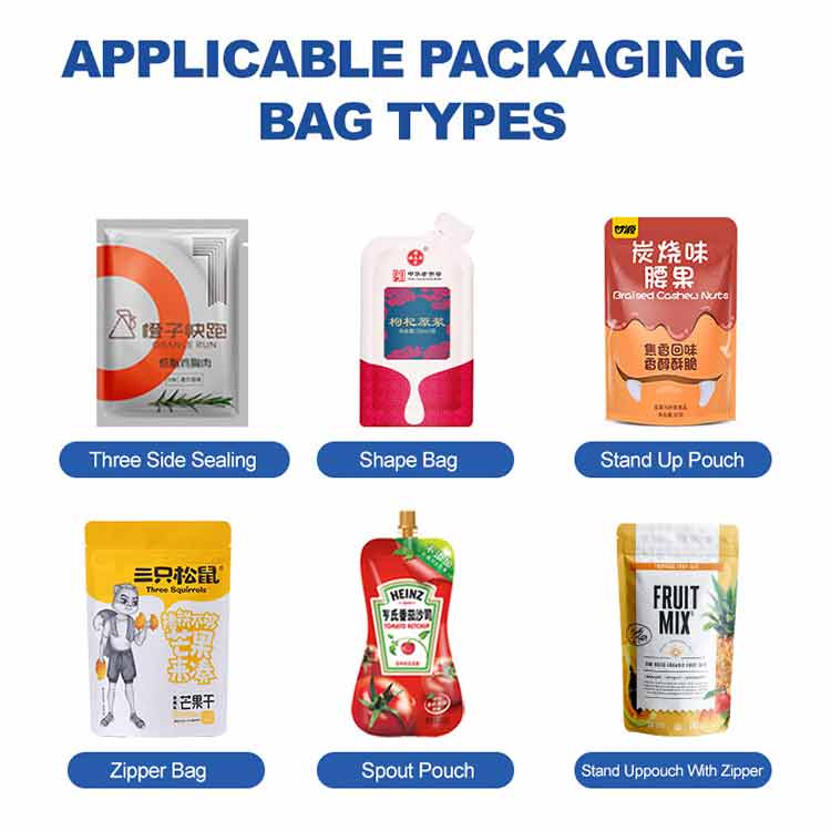 The automatic single-station bag machine is a pre-made bag automation equipment which is professionally applied to the requirements of packaging.Through a multi-station to complete a series of actions such as bagging, opening, printing, filling, and mouth of the bag, it is suitable for various particles, liquids,paste sauce,powders, powders and other materials. It is widely used in food,chemical, hardware, toys and other industries. It can be used with various filling devices such as screw scales,linear scales,tipping bucket,measuring cup,filling machineand combination scales.