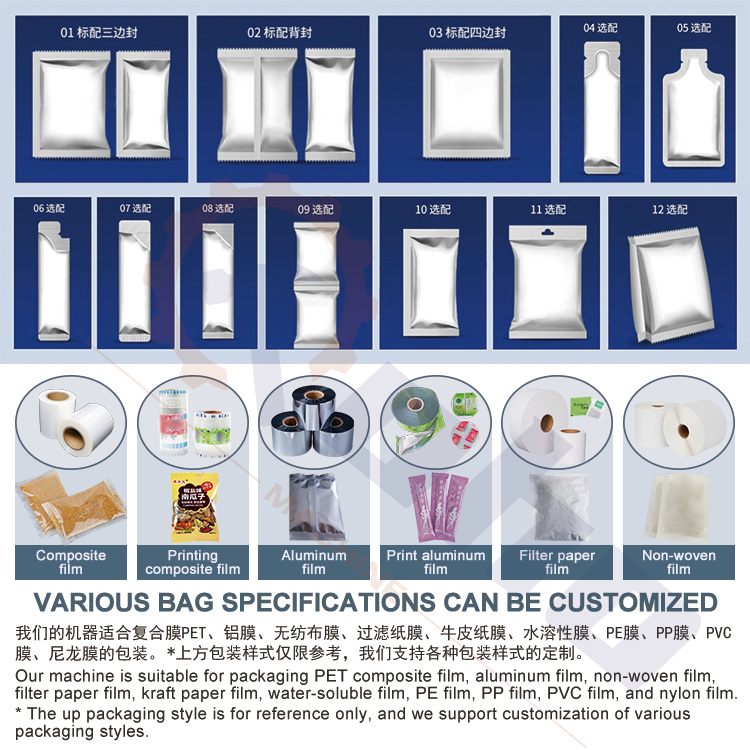 1. Water packaging machine 2. Fruit juice packaging machine 3. Sauce packaging machine 4. Ice pop packaging machine 5. Tomato sauce packaging machine 6. Honey packaging machine 7. Liquid packaging machine 8. Paste packing machine
